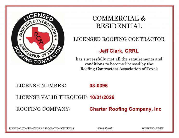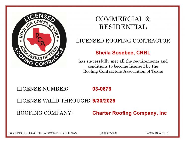Charter Roofing is committed to being a leader in the commercial roofing and waterproofing industry. We maintain this commitment by holding ourselves to the highest standards in the industry. In accomplishing this goal, we have continued participation in relevant trade organizations and certification boards which, one of many is the Roofing Contractors Association of Texas (RCAT):